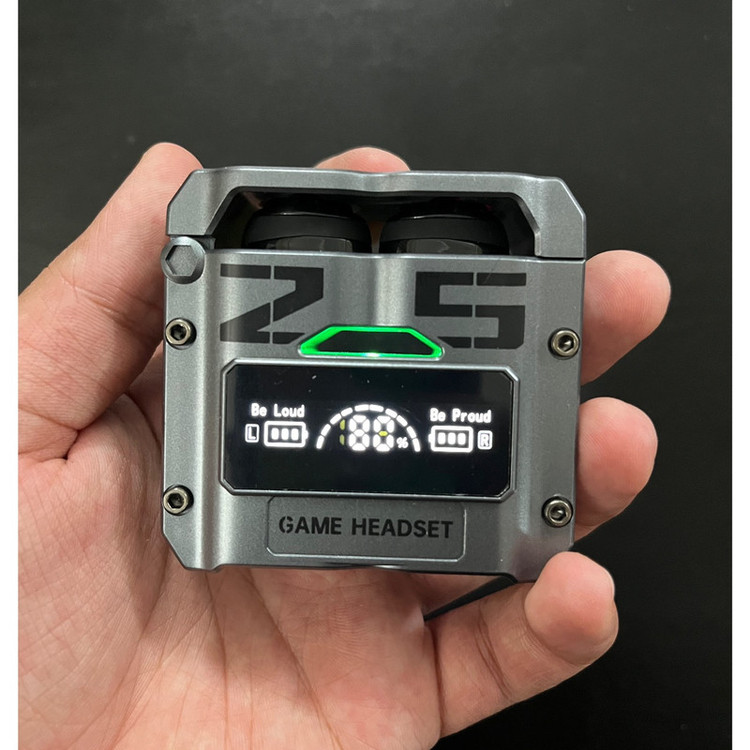 اگر به دنبال تهیه یک هدفون بیسیم گیمینگ و استفاده روزانه هستید ، هندزفری بلوتوثی گیمینگ DAMIX مدل M25 ENC یک ایرپاد مخصوص بازی و استفاده روزانه است که با طراحی اسپرت با افکت های لامپ های 7 رنگ RGB ظاهر جذاب برای استفاده روزانه را به شما ارائه میکند. این مدل برای اتصال به دستگاه به بلوتوث نسخه 5.3 مجهز شده است و در مدت زمان کوتاه ، اتصال با گوشی موبایل اندروید یا ios شما برقرار خواهد شد. از ویژگیهای اصلی این محصولريال محفظه نگهدارنده یا همان کیس آن است. این کیس قابلیت شارژ هدفون را دارد. برای شارژ آن کافی است از درگاه USB-C تعبیه شده بر روی کیس و کابل شارژ درون بسته بندی استفاده کنید. همچنین این ایرپاد گیمینگ دارای یک میکروفون با کیفیت است و این ویژگی ، آن را برای مکالمه مناسب میسازد . از قابلیتهای این محصول میتوان به ضد آب بودن ، فعال بودن Siri در آیفون ، HD Voice و ENC است. زیر این محصول یک پورت خروجی USB نیز قرار دارد که به وسیله آن میتوانید از باتری ایرپاد به عنوان پاور بانک اضطراری نیز استفاده کنید