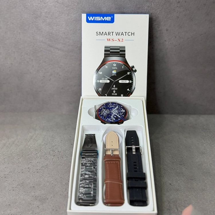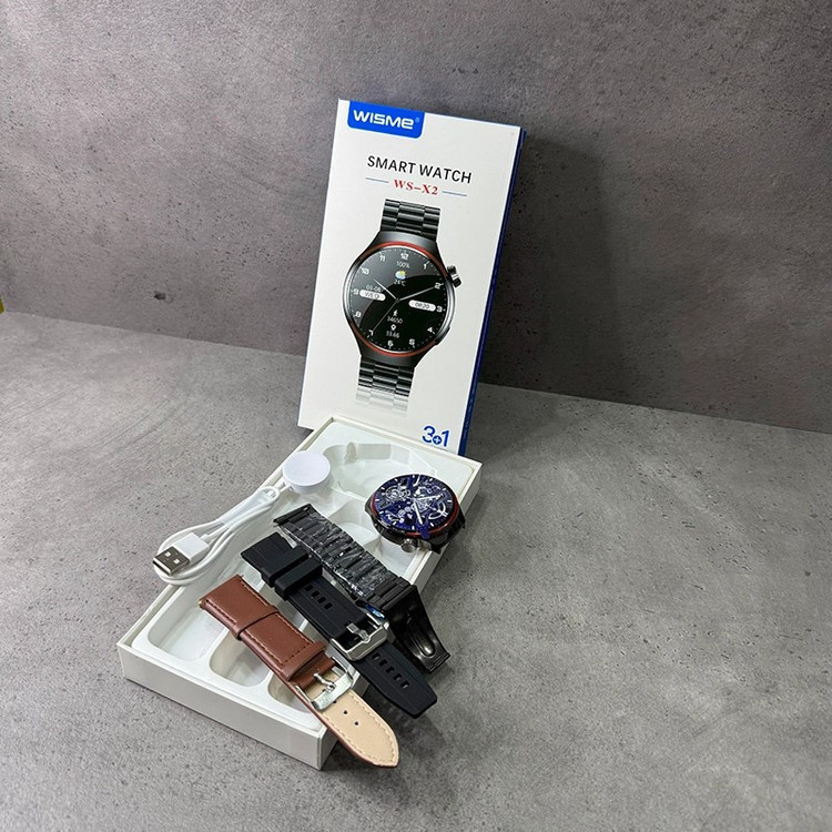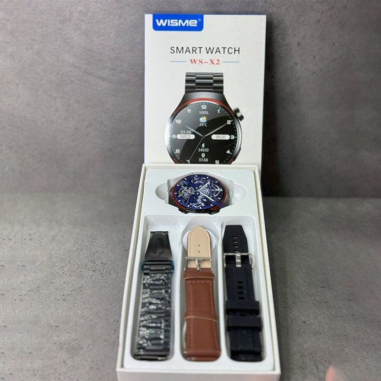 مشخصات ساعت هوشمند Wisme مدل WS-X2 شامل بدنه آلومینیومی در رنگهای مشکی و نقرهای با سایز ۴۶ میلیمتری است. این ساعت دارای بندهای سیلیکونی، فلزی و چرمی با قابلیت تعویض و قفل بند میباشد. مقاومت در برابر آب دارد و امکان نصب گلس روی نمایشگر فراهم است، اما از کاور محافظ پشتیبانی نمیکند. صفحهنمایش ۲.۱ اینچی AMOLED آن لمسی، رنگی و گرد بوده و از قابلیت نمایشگر همیشه روشن بهره میبرد. این مدل با پردازنده دو هستهای و سیستمعامل Watch OS عرضه شده و با دستگاههای iOS و اندروید سازگار است. از منو و اعلانات فارسی پشتیبانی میکند و دارای دستیار صوتی و ChatGPT است. امکان برقراری تماس مستقیم و از طریق بلوتوث را دارد و از بلوتوث و NFC پشتیبانی میکند، اما فاقد Wi-Fi، سیمکارت و امکان اتصال مستقیم به ایرپاد است. این ساعت قابلیت کنترل موسیقی و دوربین گوشی را دارد، اما امکان ذخیره موسیقی و ضبط صدا در آن وجود ندارد. سنسورهای اندازهگیری شامل ضربان قلب، اکسیژن و فشار خون، قند خون و نوار قلب است و قابلیت پایش خواب، گامشمار، کالریسنج، ارتفاعسنج و فشارسنج را ارائه میدهد. این مدل قطبنما ندارد اما از دستور حرکتی و خاموشی صفحه با کف دست پشتیبانی میکند و دارای یادآورهای سلامتی است. سایر ویژگیهای آن شامل کورنومتر، تایمر، ماشینحساب، رمزگذاری روی ساعت و امکان گذاشتن پسزمینه دلخواه میشود. این ساعت با طراحی مدرن، قابلیتهای ورزشی و سلامتی، مکالمه و پشتیبانی از زبان فارسی، گزینهای مناسب برای استفاده روزمره، رسمی و ورزشی است.
